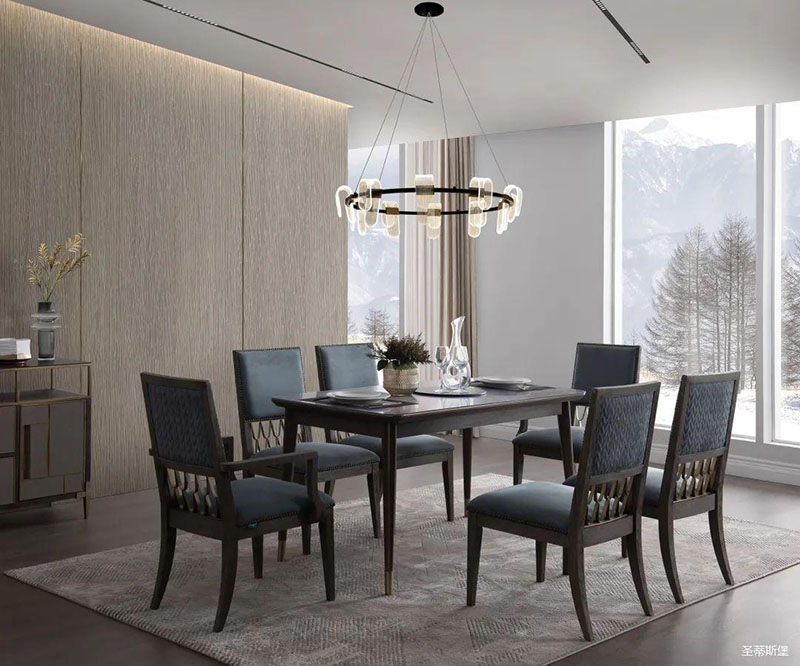 餐桌的天然材质经过时间的沉淀,散发着生生不息的自然生命力,它的纹理与质感展现着尊贵奢华的艺术气息。“艺术的伟大意义,基于它能显示人的真正感情,内心生活的奥秘和热情的世界。”而这款融合自然艺术与实木雕刻工艺的餐桌,不仅表达了罗曼·罗兰对于生活与感情的理解,也让你在居家生活中处处体验到生活的真谛。
